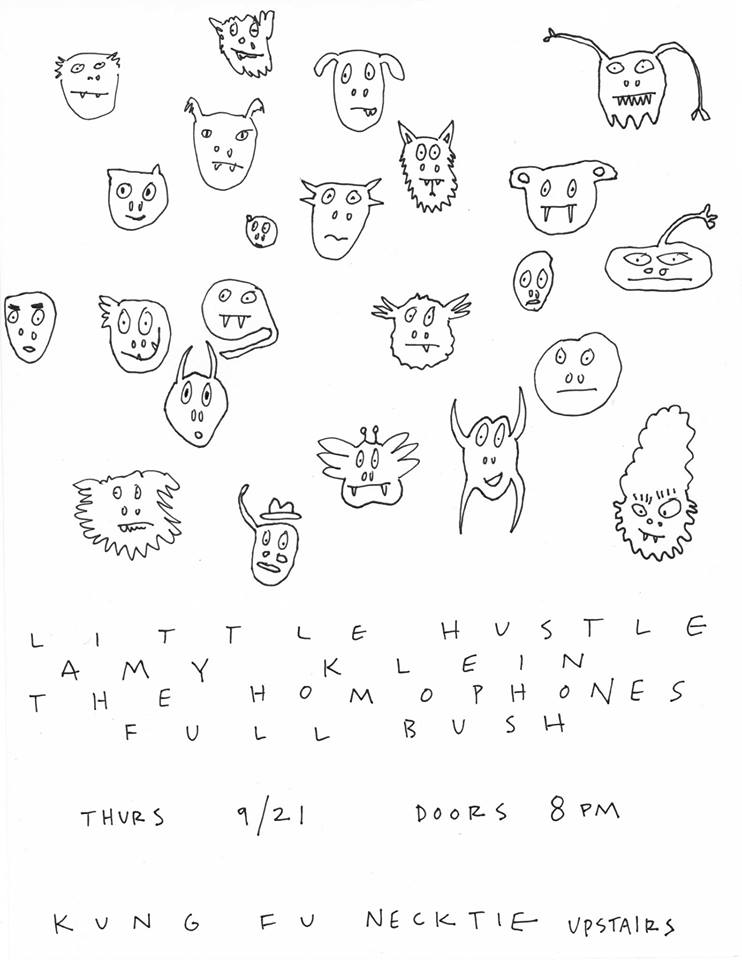 KUNG FU NECKTIE upstairs! Doors at 8:00 Little Hustle’s first night of mini tour featuring, in order of appearance 1. Full Bush https://www.facebook.com/FullBushBand/ 2. Little Hustle https://www.facebook.com/littlehustlenyc/ http://littlehustlenyc.com/ 3. The Homophones https://www.facebook.com/The-Homophones 4. Amy Klein https://www.facebook.com/amyrebeccaklein/