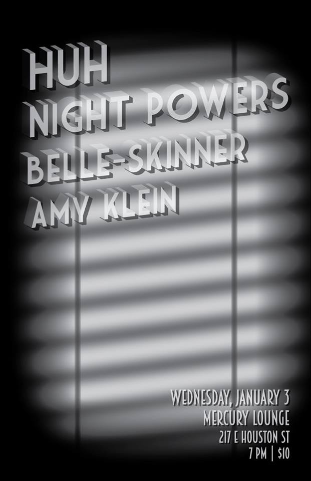 Huh // Night Powers // Belle-Skinner // Amy Klein The Mercury Lounge Wednesday, January 3rd, 2018, 7:00pm $10 // 21+ Tickets –> http://ticketf.ly/2jCCJYN